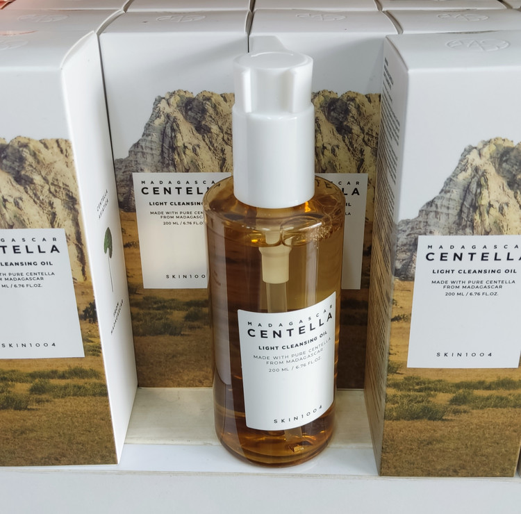 روغن پاک کننده ملایم پوست سنتلا مدل Skin 1004 حجم 200 میلی لیتر، پاک کننده ای ملایم و روغنی است که به طور موثری آرایش، ناخالصی ها، چربی اضافی و ضد آفتاب را بدون تحریک ناحیه چشم پاک می کند